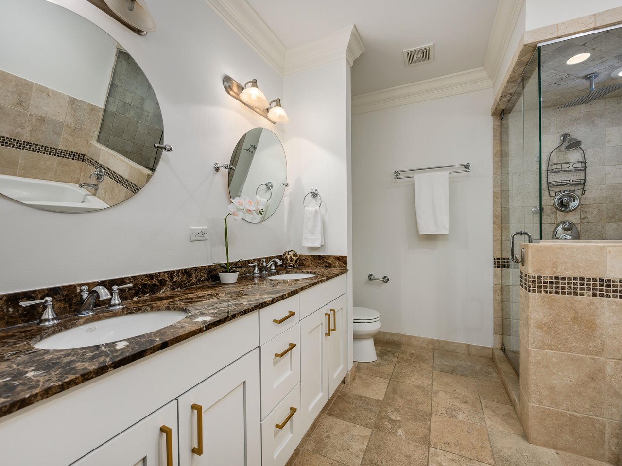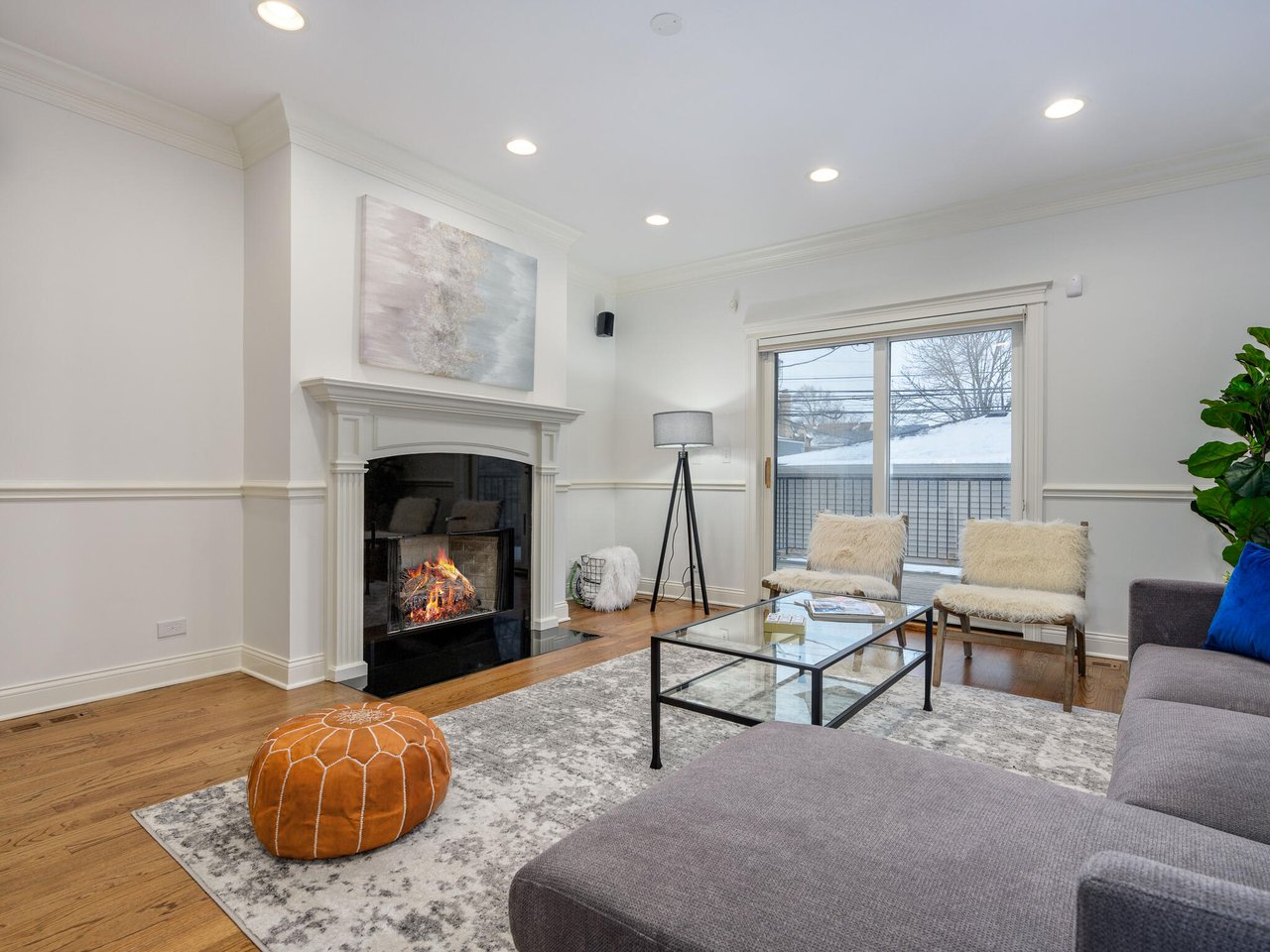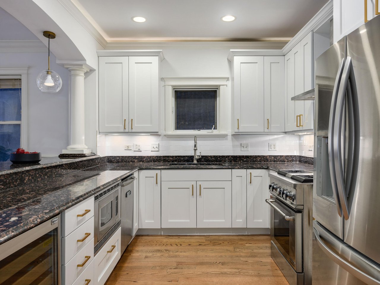 Oversized and renovated lower duplex home in Audubon school district! This home lives like a single-family with a large front living room featuring a balcony, fireplace, and true dining room space. Beautifully renovated kitchen with freshly painted white cabinetry, new backsplash, updated lighting, eat-in breakfast bar, plus a coveted giant walk-in pantry. The kitchen opens to the massive family room featuring a second fireplace and beautiful moldings. The rear deck is a generous size and perfect for grilling and entertaining. Powder room on this level! All three bedrooms are located in the lower level which has hardwood floors and radiant heat throughout creating a cozy and luxurious feel. The primary suite features two walk-in closets and a spa-quality bath with dual vanities, separate tub and steam shower. Truly unbeatable storage with multiple storage closets plus a laundry room with side-by-side washer and dryer. Garage parking space included. Well-maintained brick building is just a short walk to the Brown line, all of Roscoe's restaurants and shops, Trader Joe's, and short distance to Southport Corridor!