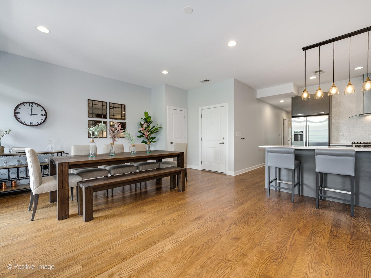 Sun-drenched gem in unbeatable Ukrainian Village location, this contemporary 3 bedroom/ 2 bathroom unit perfectly combines stunning, modern finishes with a functional and spacious layout. South-facing unit with views of the gorgeous, tree-lined street boasts hardwood floors throughout, two fabulous outdoor spaces, extra-wide living & dining room, and ATTACHED, heated garage parking. Stunning kitchen is the heart of the home with Bosch appliances, ample storage in the high-end Italian custom cabinetry, Silestone quartz counters and backsplash, and eat-in breakfast bar. Kitchen is open to the gracious living room with large windows flowing into true dining room that leads out to private front terrace, ideal for grilling! Primary suite located in the back of the home for privacy features a large walk-in closet, second private balcony, and spa-quality bathroom complete with two separate vanities, beautiful shower, and oversized tub! Two additional great sized bedrooms and full bathroom complete this dazzling home. Garage parking and additional storage included in price. Walk to everything from this fabulous location - easy access to all that Ukrainian Village, Wicker Park and West Town have to offer including public transportation, wonderful restaurants, shops, parks and more! Around the corner from Mariano's.