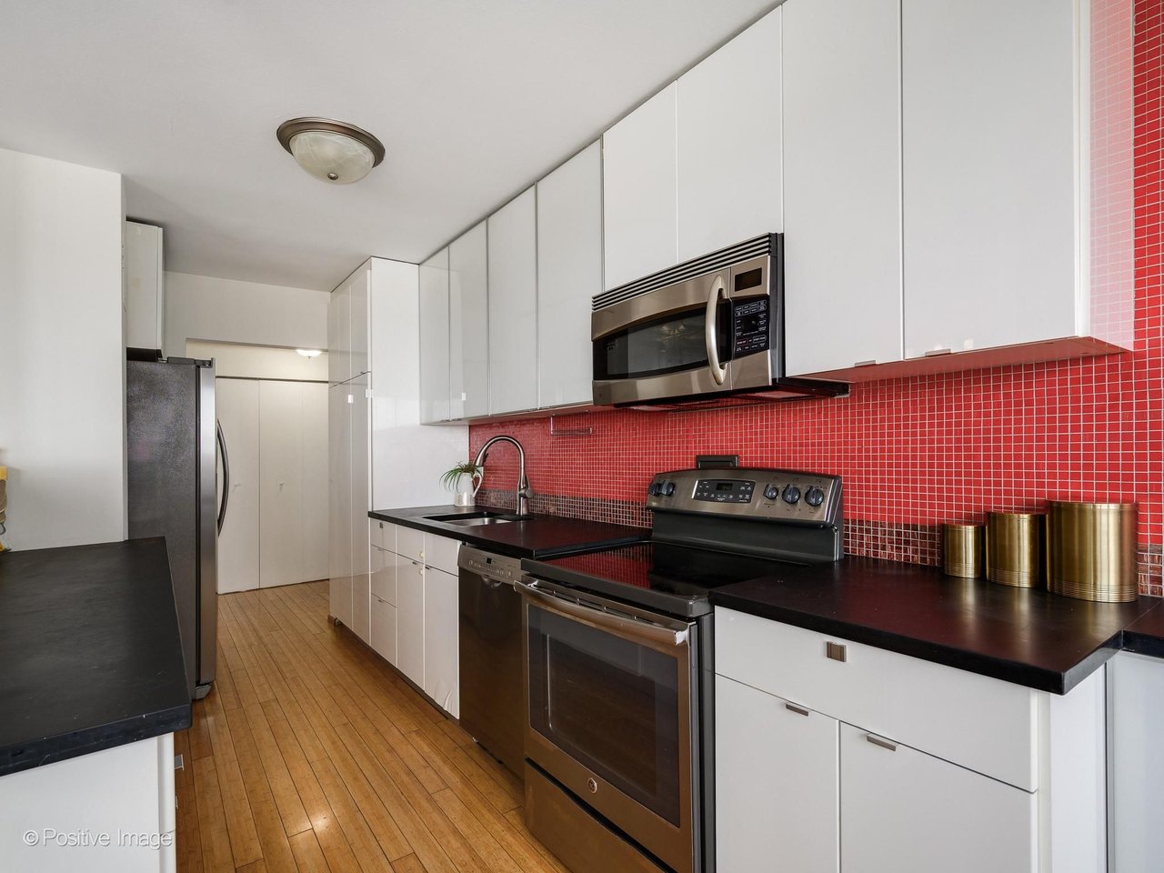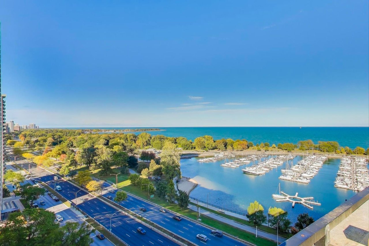 Expansive and rarely available combined residence showcasing the largest two-bedroom floor plan in the building, highlighted by sweeping lake and harbor views and an exceptionally spacious, light-filled layout. The oversized living and dining area offers a stunning backdrop for both everyday living and entertaining, framed by wall-to-wall windows that capture the water and skyline. The kitchen is thoughtfully positioned with generous storage, including an oversized pantry, and flows seamlessly into the main living space. Well-proportioned bedrooms feature excellent closet space, including a substantial walk-in closet in the primary suite. Freshly painted throughout with brand new carpeting, the home presents a clean, move-in ready feel with room to further elevate. Full-amenity building with 24-hour door staff, fitness center, and rooftop sundeck, all set in a premier lakefront location.