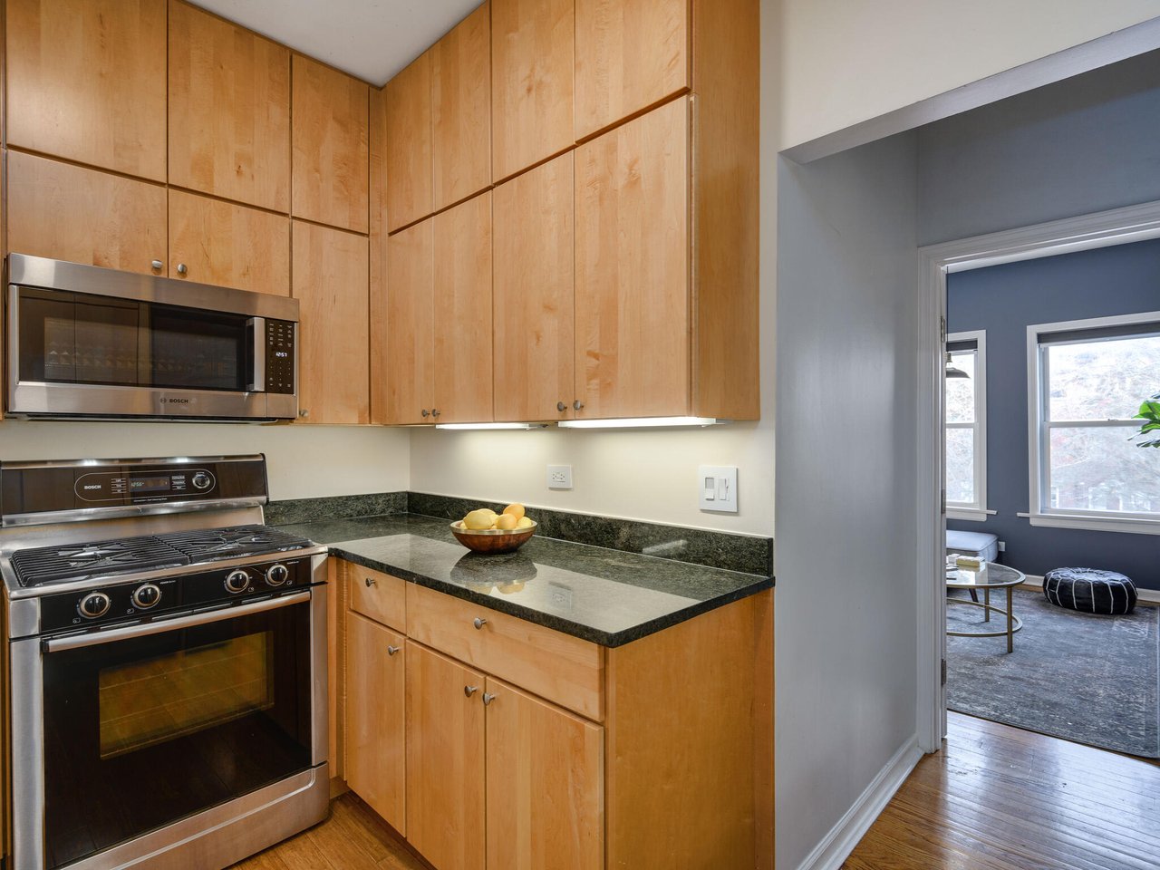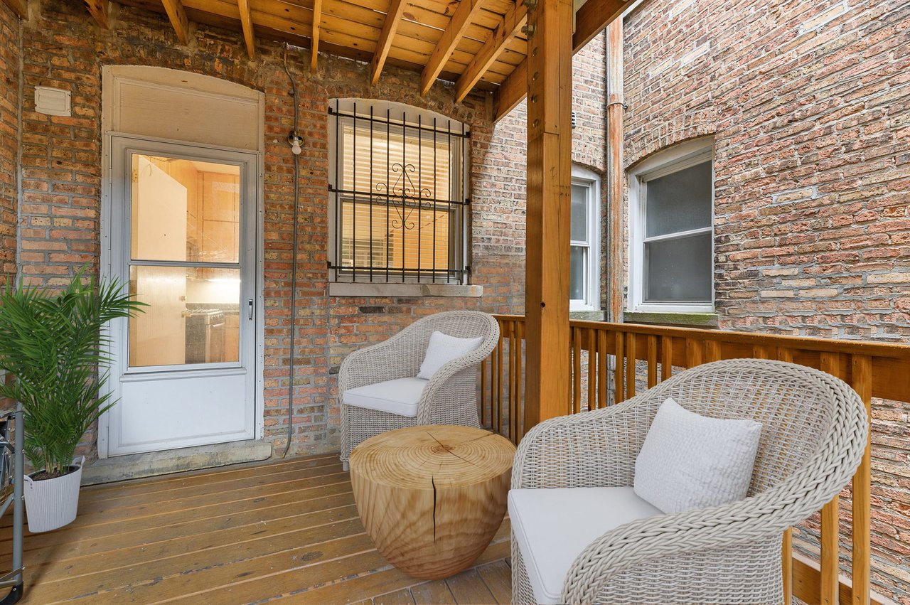 This completely renovated, spacious 3bed/2bath corner home boasts an exceptional layout with high ceilings and east-facing bay windows providing sunlit days. Thoughtfully updated with smart technology, this home features hardwood floors throughout, crown molding and a Chef's kitchen with all stainless-steel appliances. The kitchen leads to a shared deck, perfect for grilling and entertaining! Spacious living and dining room is freshly painted and overlooks the tree-lined street. Third bedroom is currently used as a cozy den. In-unit washer/dryer and huge storage room in building. Leased parking space can be transferred for $165/mo. Walk to the lake, red line, Whole Foods, and fabulous dining, shopping and bars!